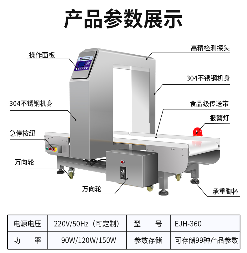 大檢測窗口的金檢機(金屬檢測機)因其寬口徑、高承重和強抗干擾能力,特別適合需要檢測大體積、重型或整箱/整托產(chǎn)品的行業(yè),整箱飲料、袋裝面粉/大米、冷凍肉制品、桶裝食用油等。自動記憶產(chǎn)品特性,切換品類無需重新調(diào)試,每臺設(shè)備附帶金屬樣本測試包