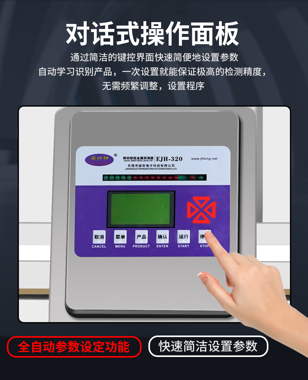 EJH-320系列全金屬檢測儀,可根據(jù)生產(chǎn)線需求配套定制窗口尺寸,檢測精度最大化,先進(jìn)數(shù)字信號(hào)處理技術(shù),有效克服產(chǎn)品效應(yīng),可精準(zhǔn)檢測鐵、不銹鋼、銅、鋁等金屬,靈敏度高達(dá)0.5mm,廣泛應(yīng)用在檢測肉類、水產(chǎn)、果蔬等食品加工過程中混入的金屬碎片、鐵絲等,精準(zhǔn)高效,為您徹底解決金屬異物隱患。