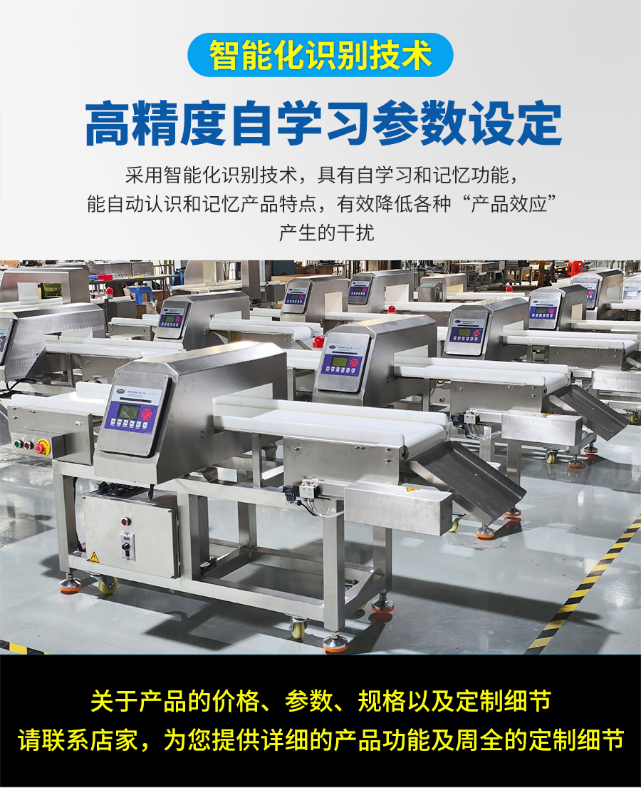 EJH-320系列全金屬檢測儀,可根據(jù)生產(chǎn)線需求配套定制窗口尺寸,檢測精度最大化,先進(jìn)數(shù)字信號處理技術(shù),有效克服產(chǎn)品效應(yīng),可精準(zhǔn)檢測鐵、不銹鋼、銅、鋁等金屬,靈敏度高達(dá)0.5mm,廣泛應(yīng)用在檢測肉類、水產(chǎn)、果蔬等食品加工過程中混入的金屬碎片、鐵絲等,精準(zhǔn)高效,為您徹底解決金屬異物隱患。
