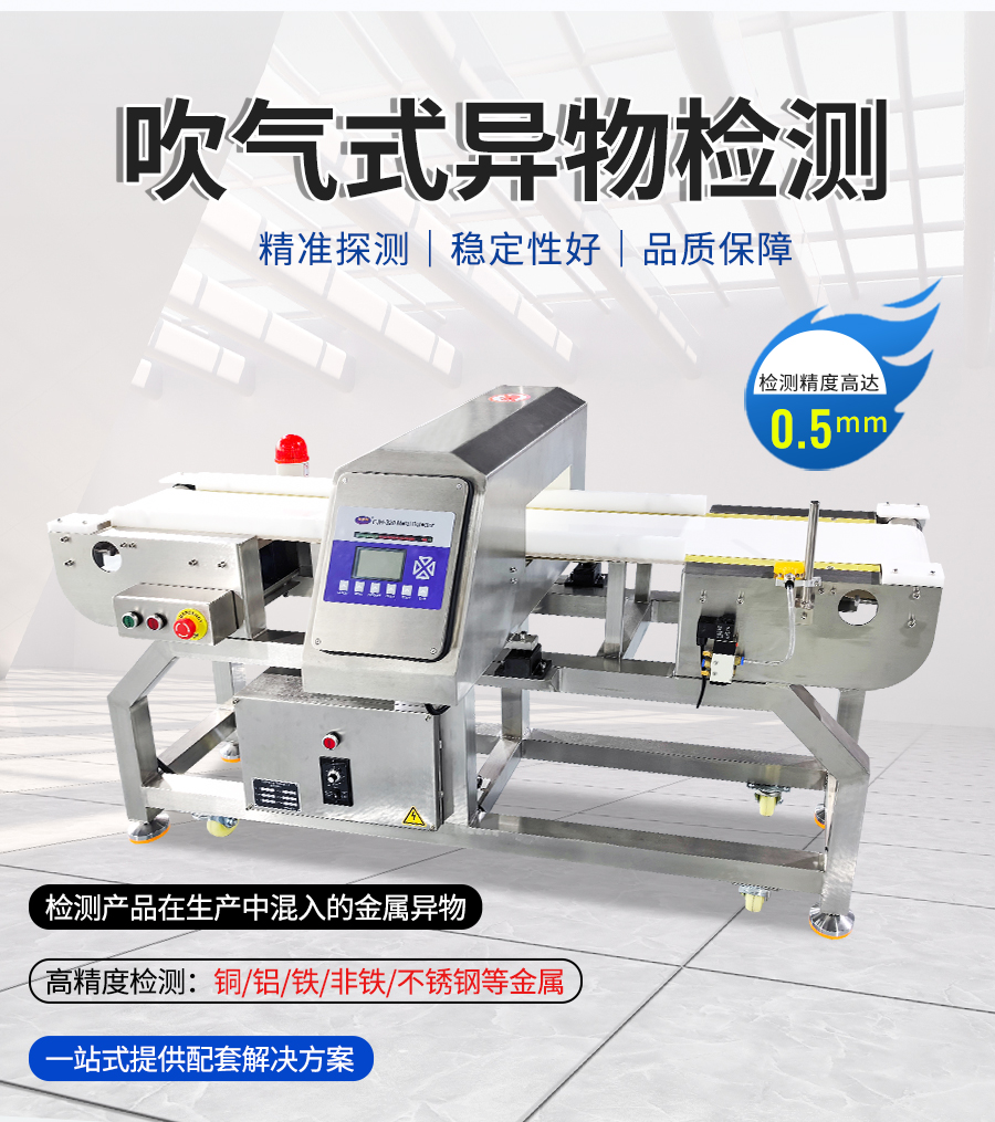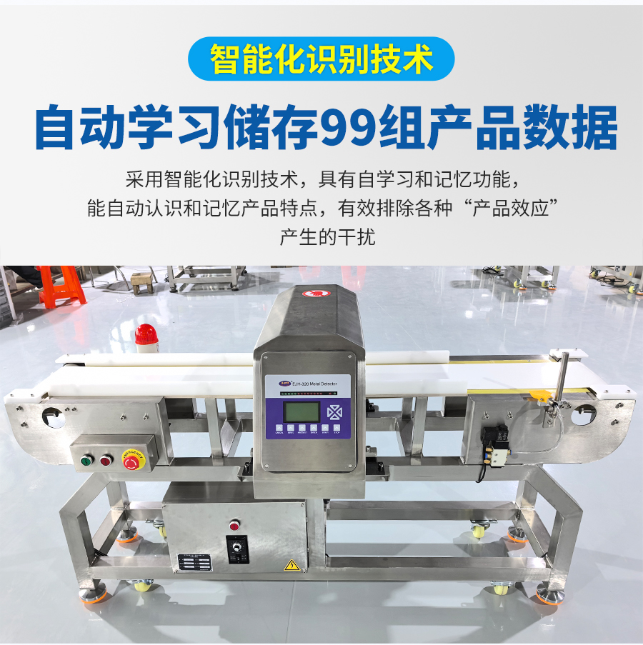 EJH-320吹氣剔除高精度金屬檢測(cè)機(jī),采用德國技術(shù)先進(jìn)的數(shù)字信號(hào)處理技術(shù)和智能化算法,精準(zhǔn)識(shí)別各類金屬雜質(zhì),為您的產(chǎn)品質(zhì)量和安全保駕護(hù)航!可檢測(cè)鐵、不銹鋼、銅、鋁等所有金屬,靈敏度高達(dá)0.5mm,輕松識(shí)別細(xì)微金屬顆粒,有效克服產(chǎn)品效應(yīng),確保檢測(cè)結(jié)果準(zhǔn)確可靠,通過多項(xiàng)權(quán)威認(rèn)證,滿足ISO9001等食品安全管理體系要求,提供通道式、落體式、管道式等多種型號(hào),滿足不同食品生產(chǎn)線的需求,主要用于小食品、化工產(chǎn)品、服裝、制鞋、海洋水產(chǎn)、漁業(yè)、干鮮水產(chǎn)、面食、冷凍食品、干鮮蔬果、糖、茶、藥品等行業(yè)的金屬異物探測(cè),檢測(cè)原料或產(chǎn)品中夾雜或漏落的鐵、鉛等各種金屬雜質(zhì)等。