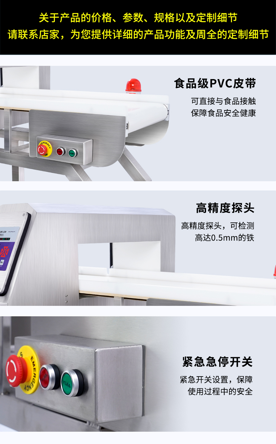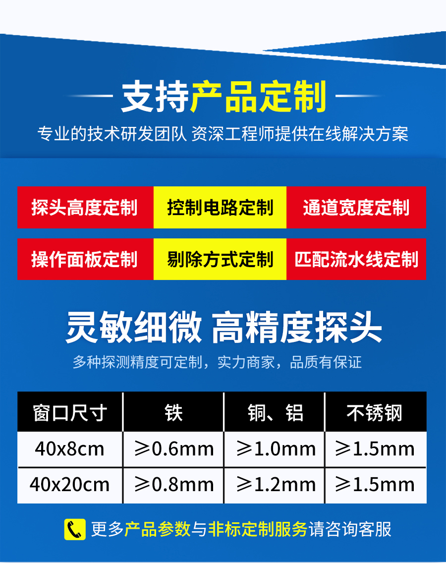 EJH-320系列全金屬檢測儀,可根據(jù)生產(chǎn)線需求配套定制窗口尺寸,檢測精度最大化,先進(jìn)數(shù)字信號(hào)處理技術(shù),有效克服產(chǎn)品效應(yīng),可精準(zhǔn)檢測鐵、不銹鋼、銅、鋁等金屬,靈敏度高達(dá)0.5mm,廣泛應(yīng)用在檢測肉類、水產(chǎn)、果蔬等食品加工過程中混入的金屬碎片、鐵絲等,精準(zhǔn)高效,為您徹底解決金屬異物隱患。