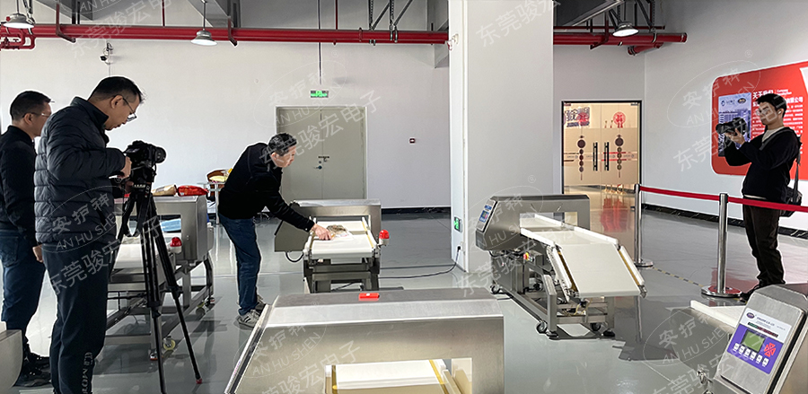 為了讓“高靈敏度”、“強(qiáng)抗干擾”等特性更直觀,記者現(xiàn)場出題:將一顆金屬測試塊,放入測試產(chǎn)品里面。當(dāng)測試產(chǎn)品快速通過新一代安護(hù)神食品金檢機(jī)時,設(shè)備瞬間發(fā)出聲光報警,這一“快、準(zhǔn)、穩(wěn)”的演示效果,讓現(xiàn)場攝制組也不禁點頭稱贊。